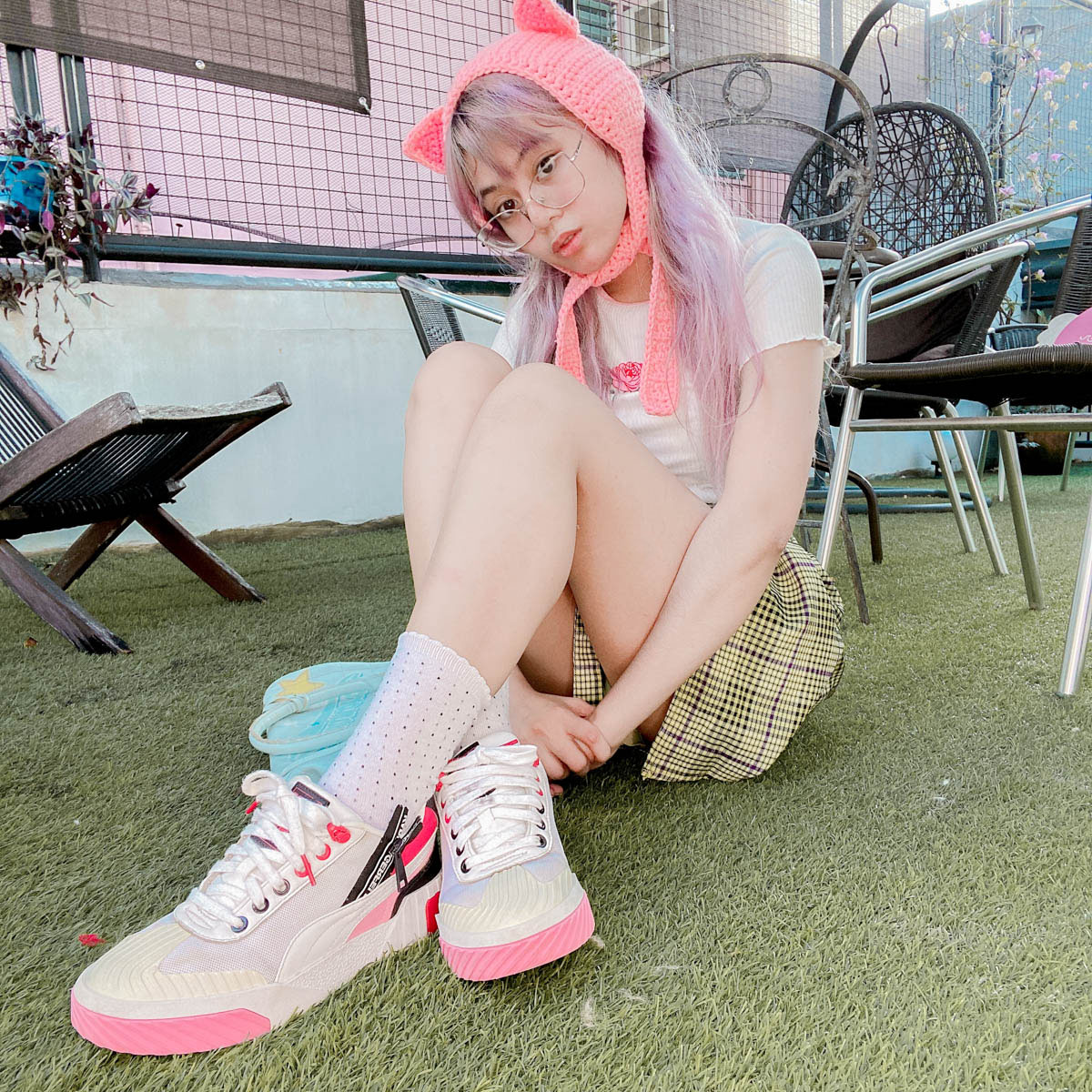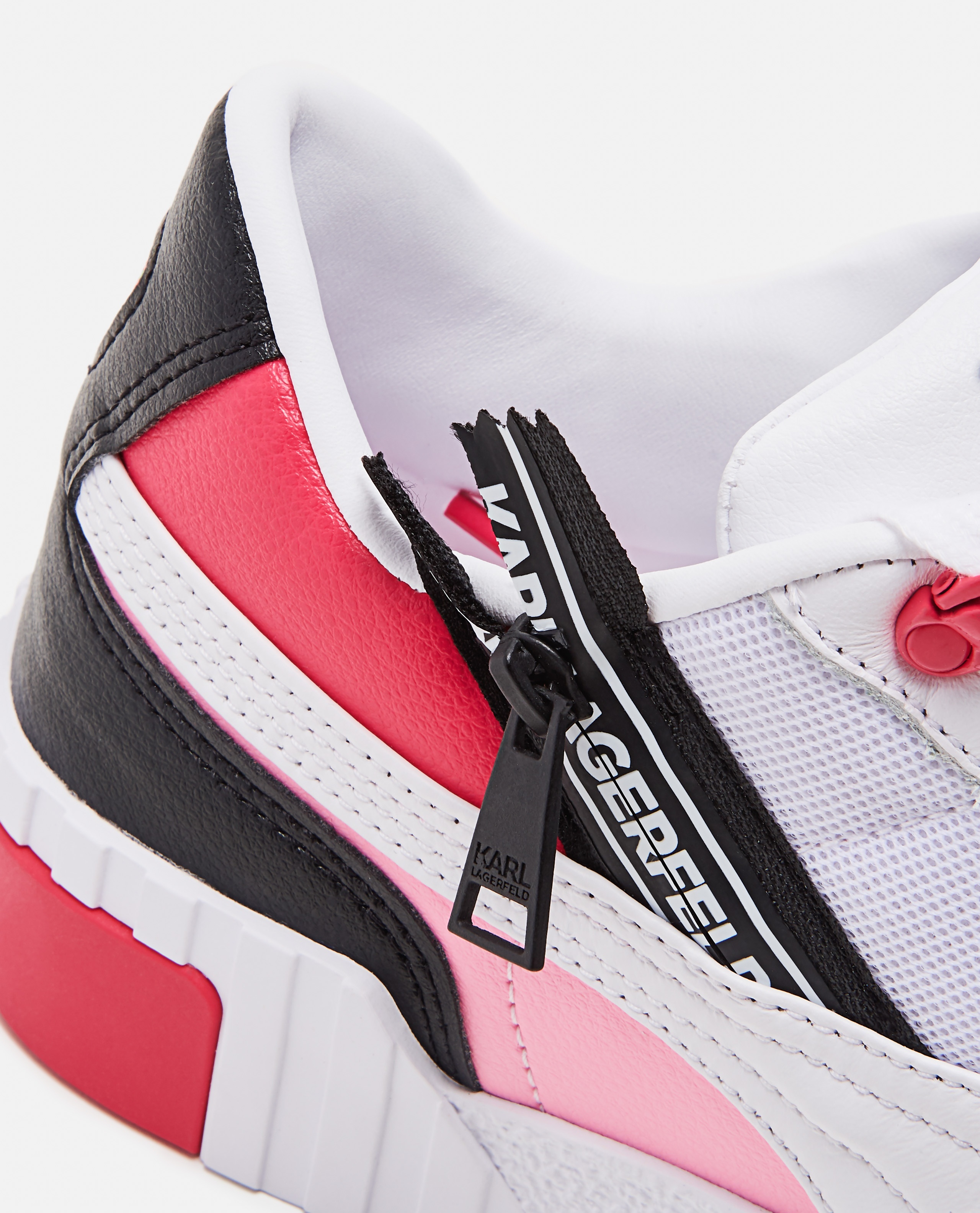 A technical, mixed-material upper accented with panels of textured rubber and breathable mesh defines these playful platform trainers. In a nod to the activewear brand’s DNA, the design features PUMA’s iconic Formstrip below a practical side zip with KARL LAGERFELD logo tape detail.