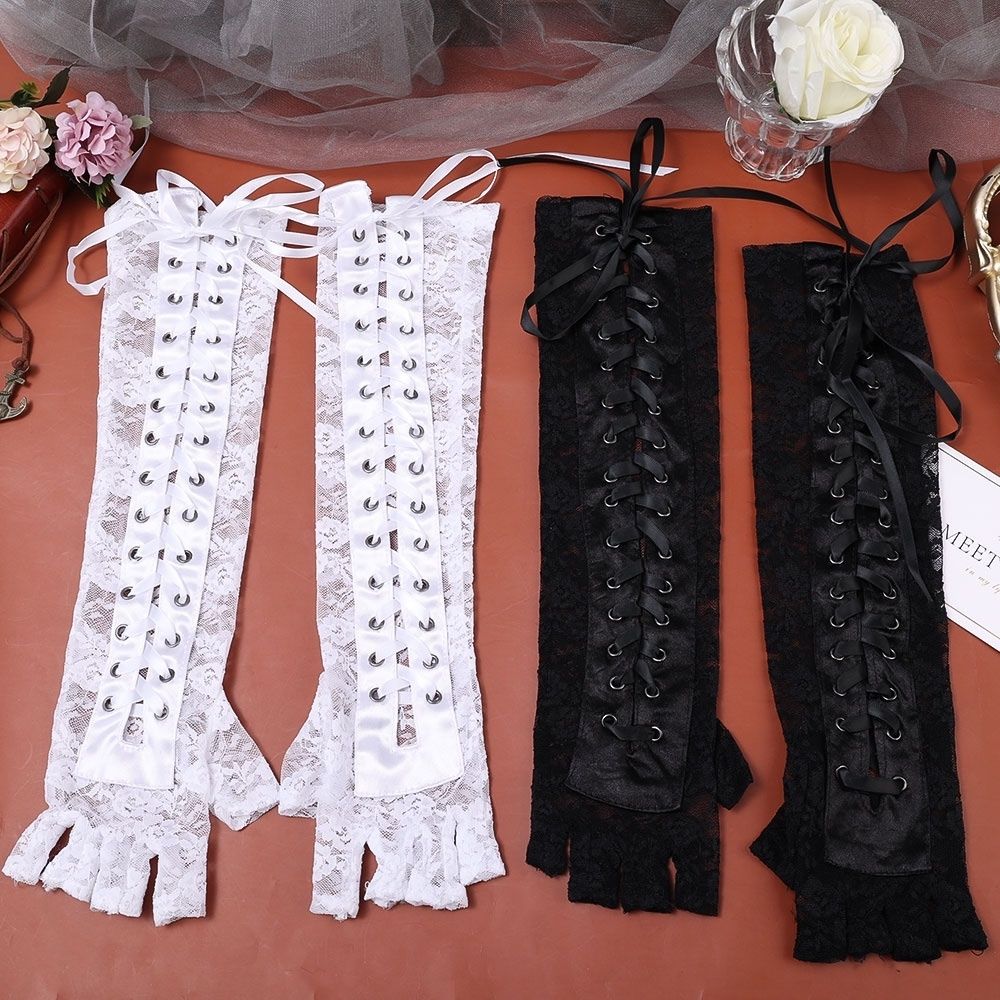 - Elevate your look with our White Gothic Laced Fingerless Gloves, perfect for retro punk style.