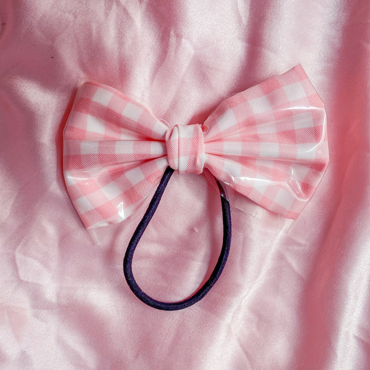 Gingham Bow Hair Tie with shimmering PUV fabric on top!