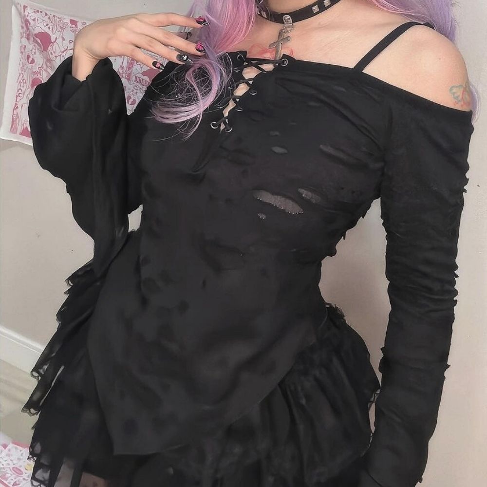 • Distressed Perfection: Channel a darkly romantic vibe with the distressed design, adding a touch of attitude to your outfit.