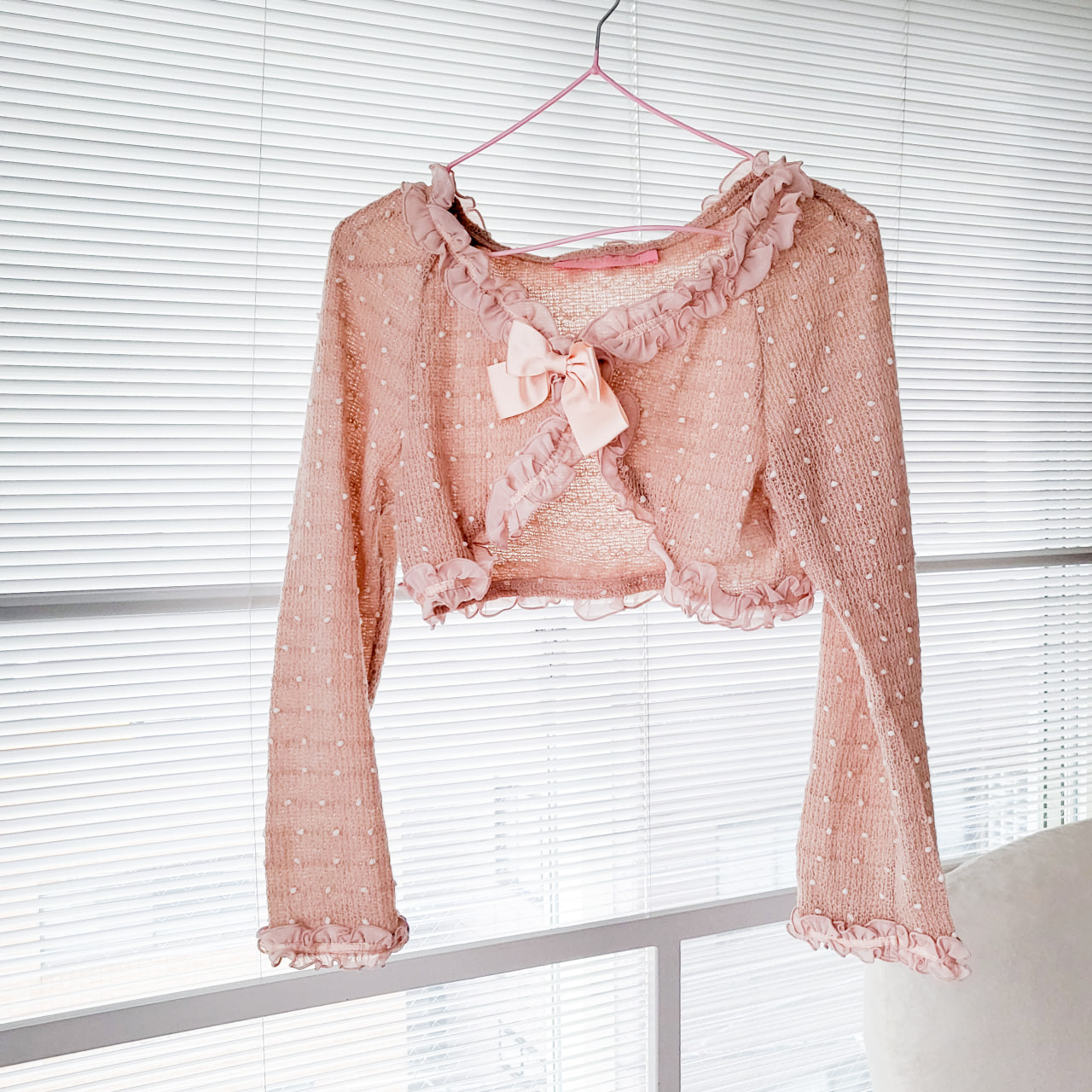 A sweet twisted knit cut and sew that floats in a polka dot style!