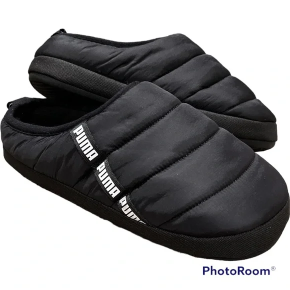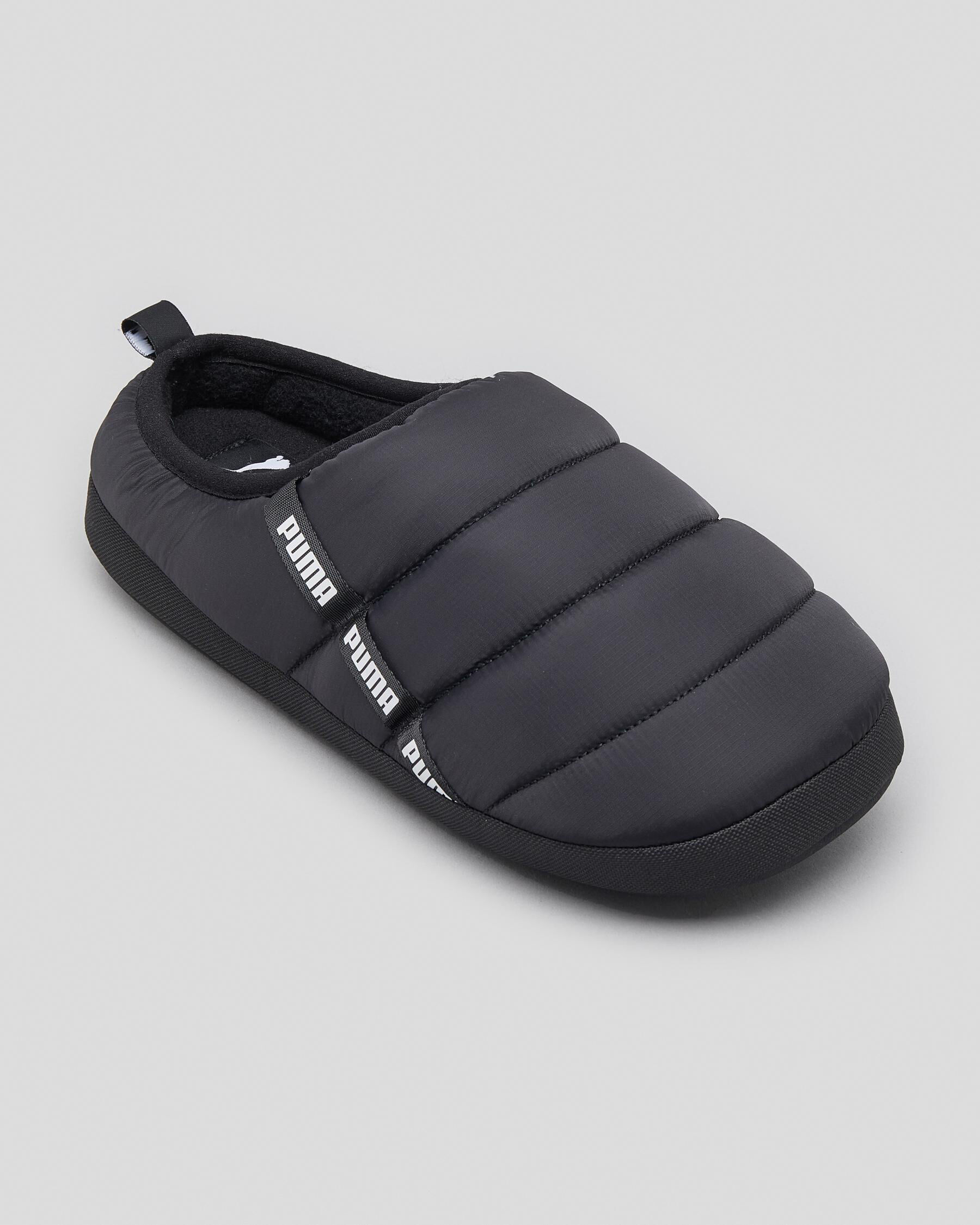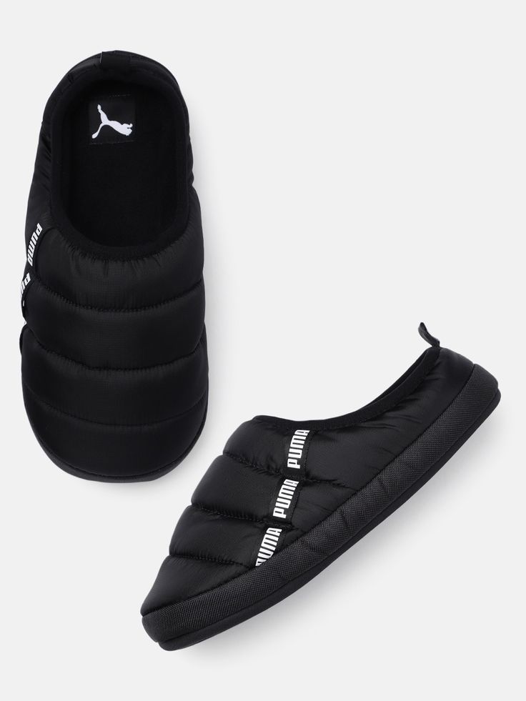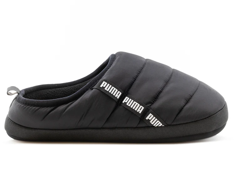 Make a statement while staying cosy with the Scuff Slippers. The quilted nylon upper and padded fleece-like lining will keep you toasty while the PUMA Wordmark webbing across the side and rubberised, non-slip outsole mean you can flaunt this fashionable footwear outside. Easily slip them on and off using the useful heel loop.