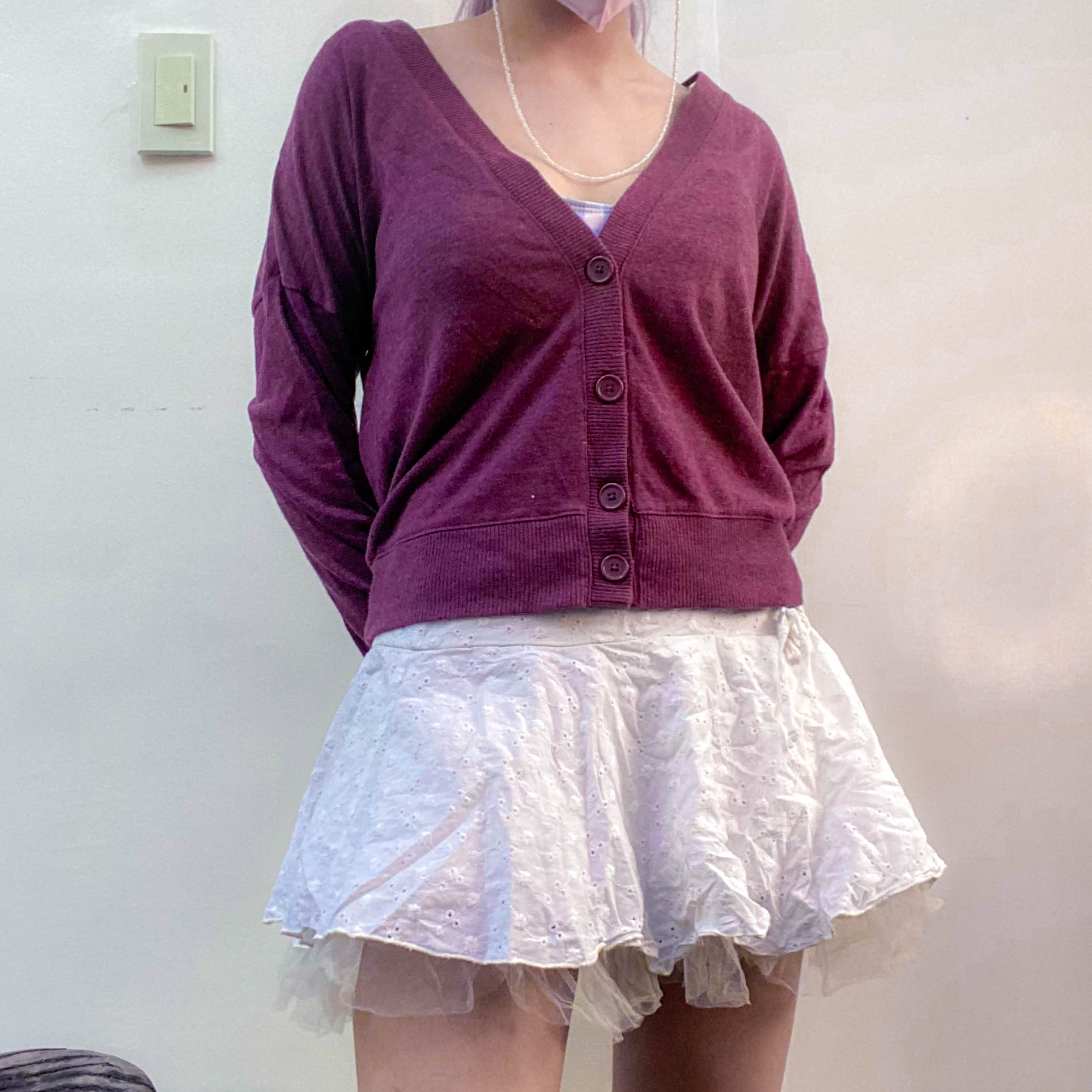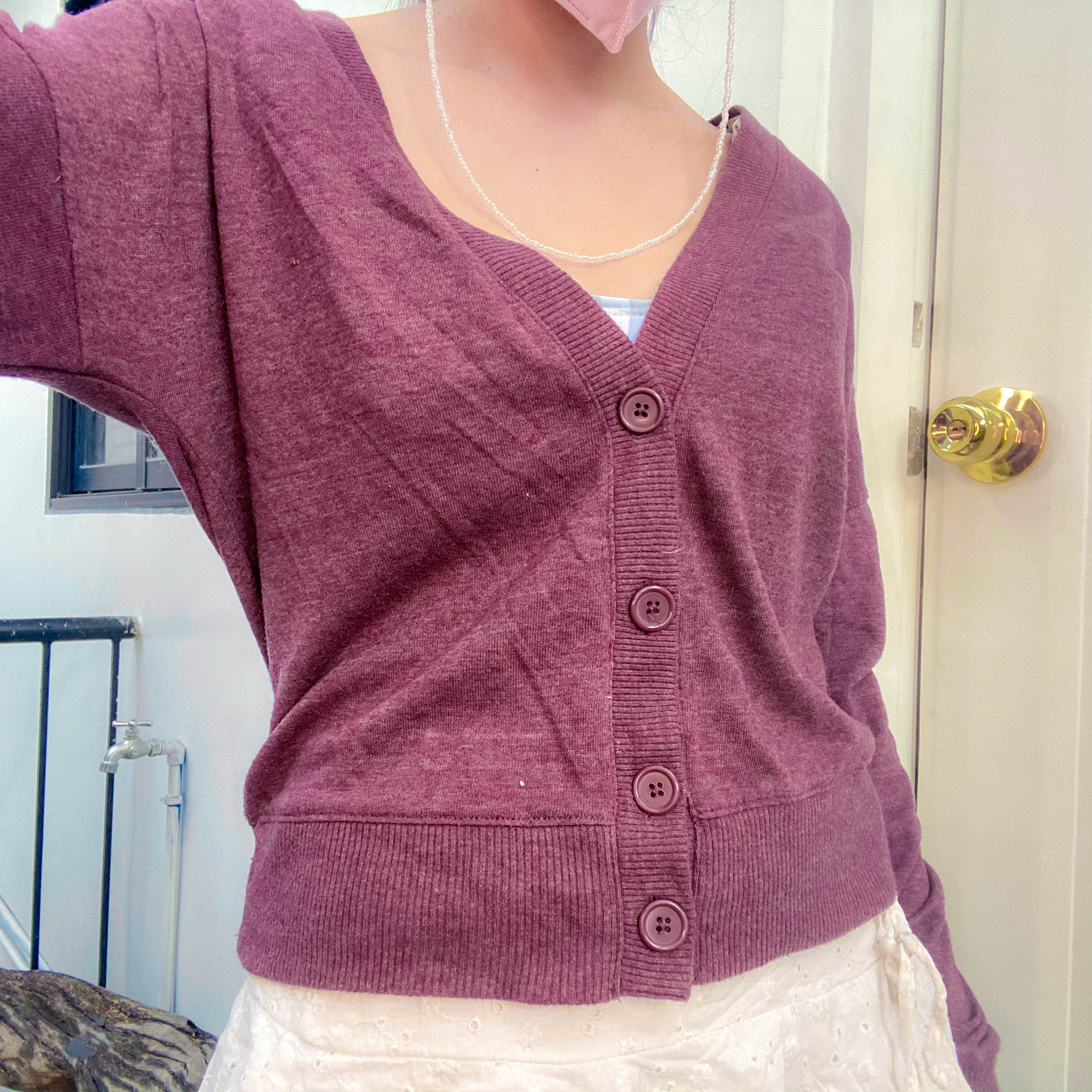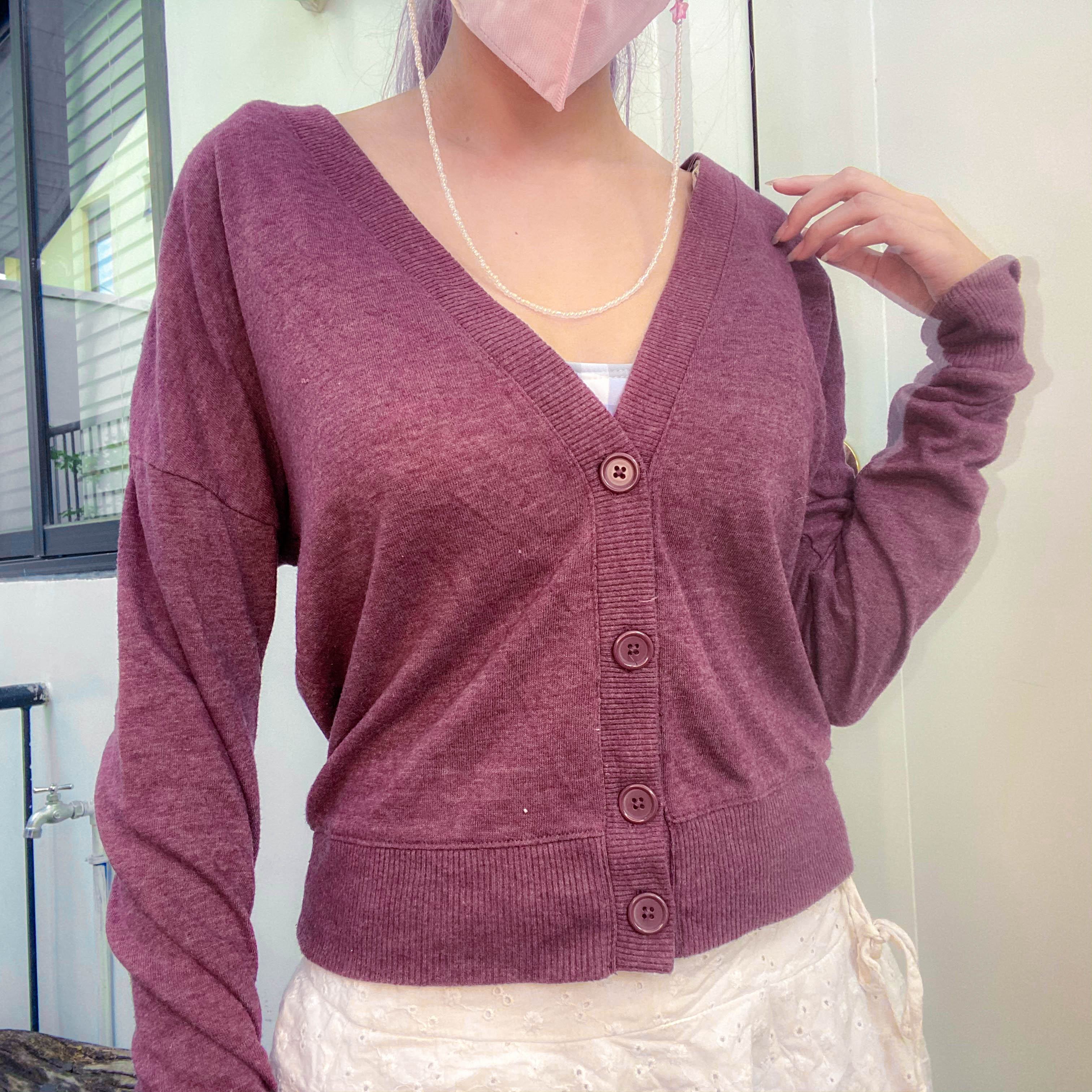 A basic v-neck long sleeve sweater cardigan with a 6-button placket and ribbed trim. - 27'' approx length from shoulder to hem - 79% viscose, 21% nylon; Machine wash cold