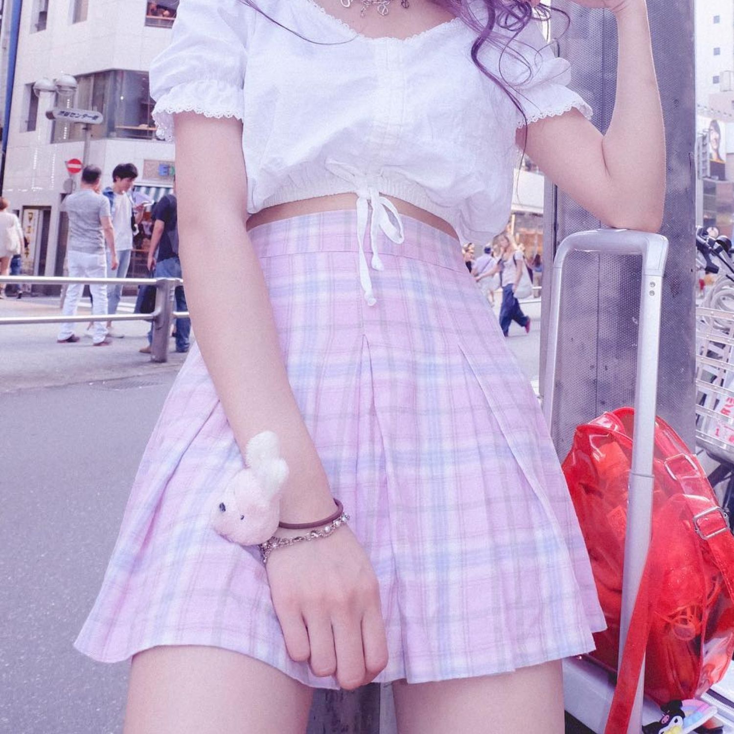 Embrace the adorable charm of Harajuku fashion with this Pastel Pink Pleated Mini Skirt! This cute skirt is a must-have for Korean and Japanese school girl fashion, featuring a delightful plaid pattern in soft pastel pink hues.