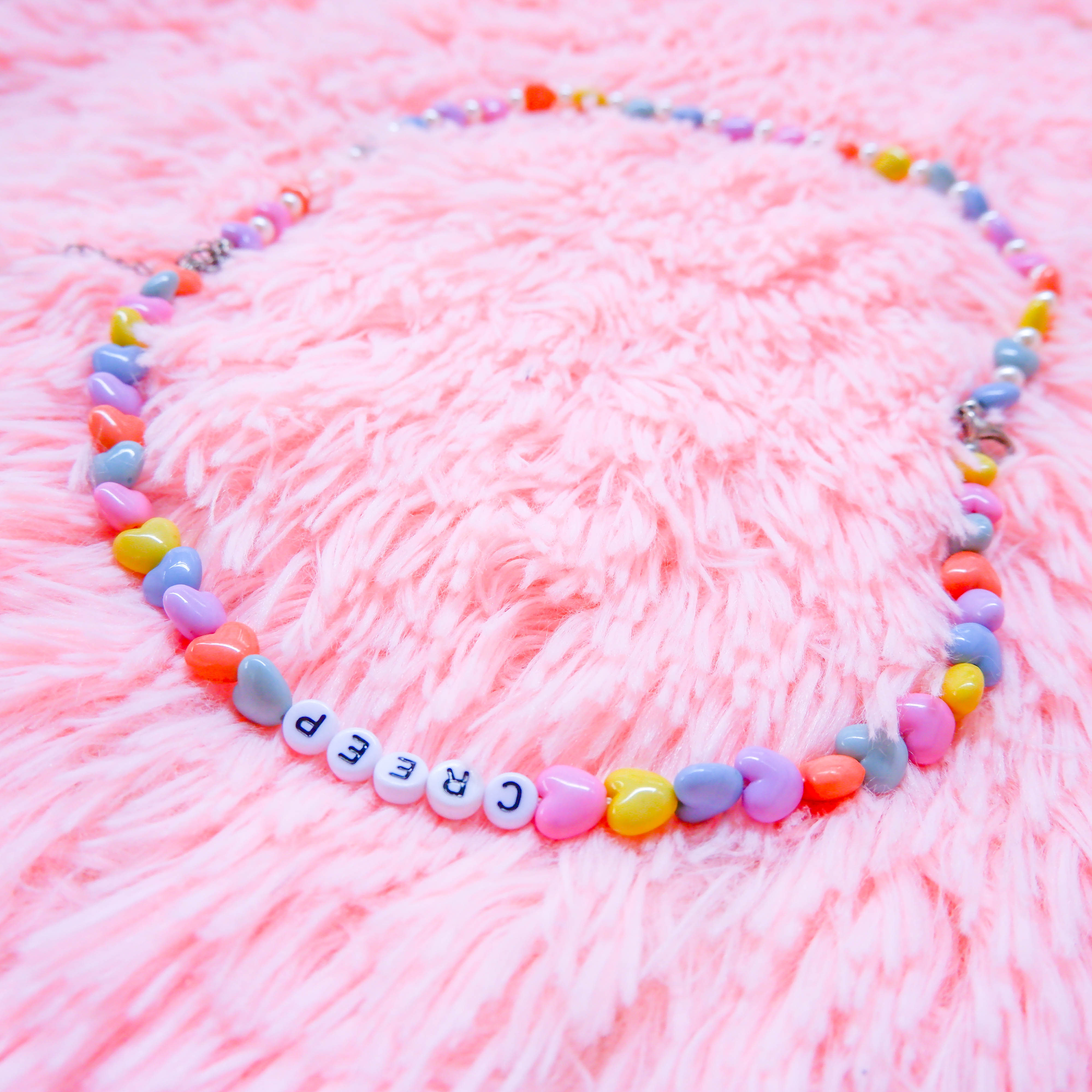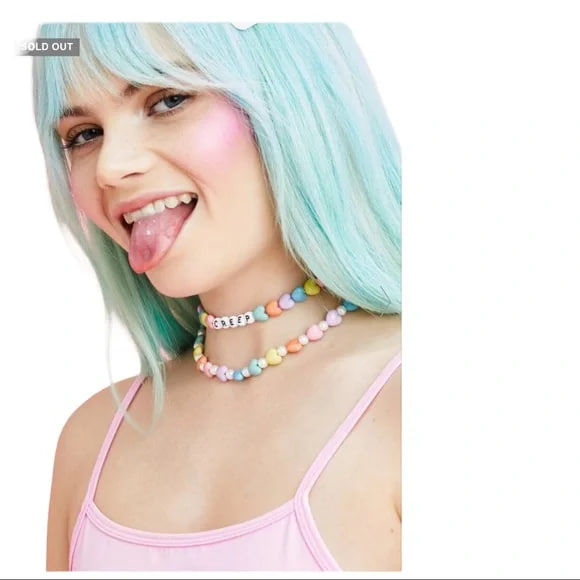 Dangerous Dollies Beaded Necklace itz a nightmare in dreamland. Ur a lil freaky fairy in this sweet necklace that has beaded hearts all ova, pearl deetz N’ CREEP letters.