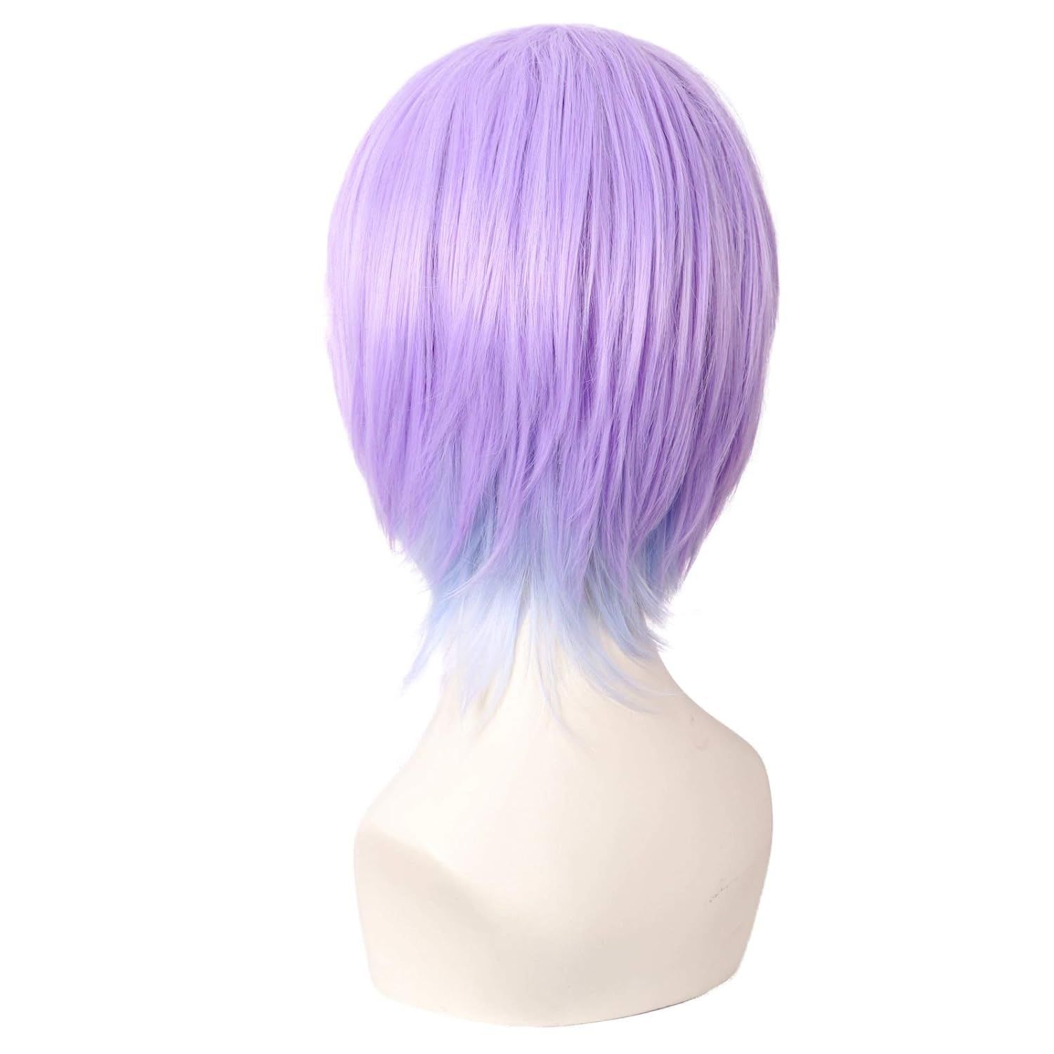 MapofBeauty Purlple 12 Inch Anime Cosplay Short Curly Synthetic Wig | Side Bangs | Gray Blue/Light Purple | Party Halloween