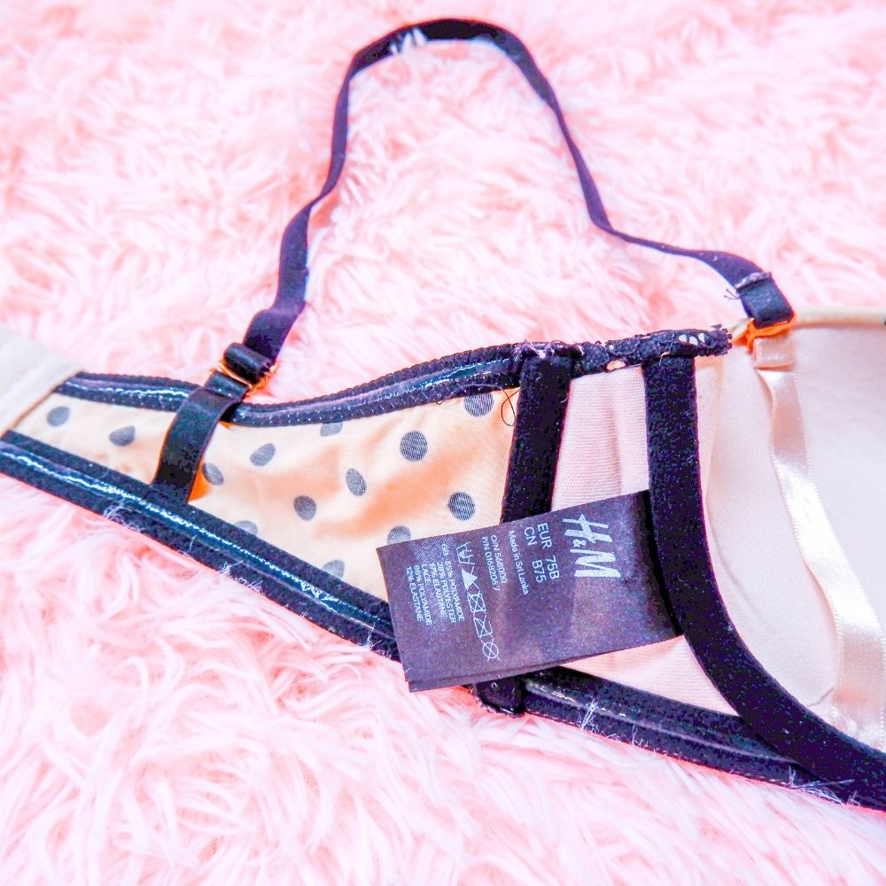 H&M Women's Push-Up Bra - Pink Beige Goth with Black Polka Dots & Lace | Sexy Comfortable | Lingerie