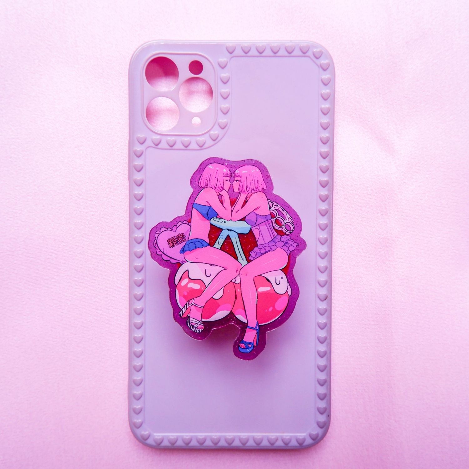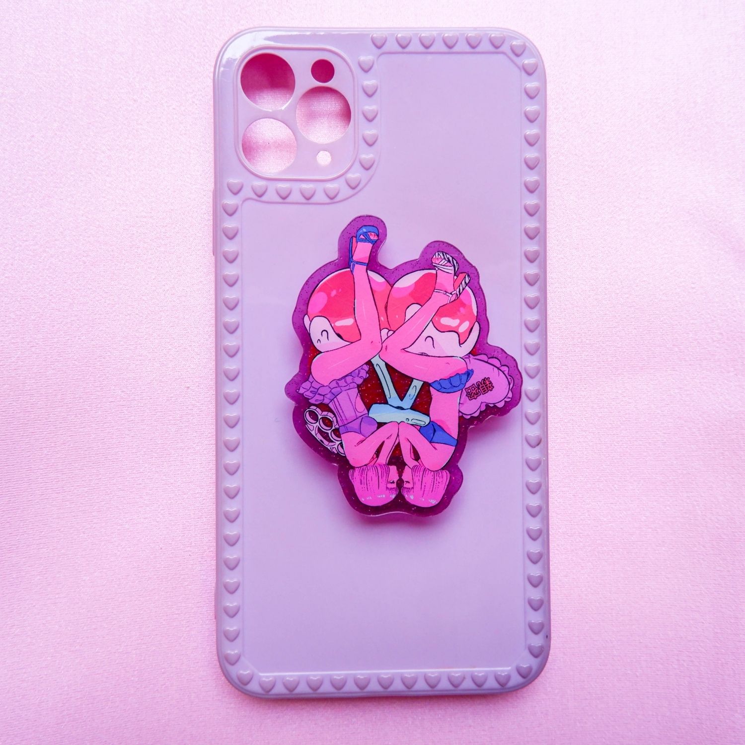 Purple Pink 3D Art iPhone Case | Cherry Anime Girls | Stand-Out Phone Grip