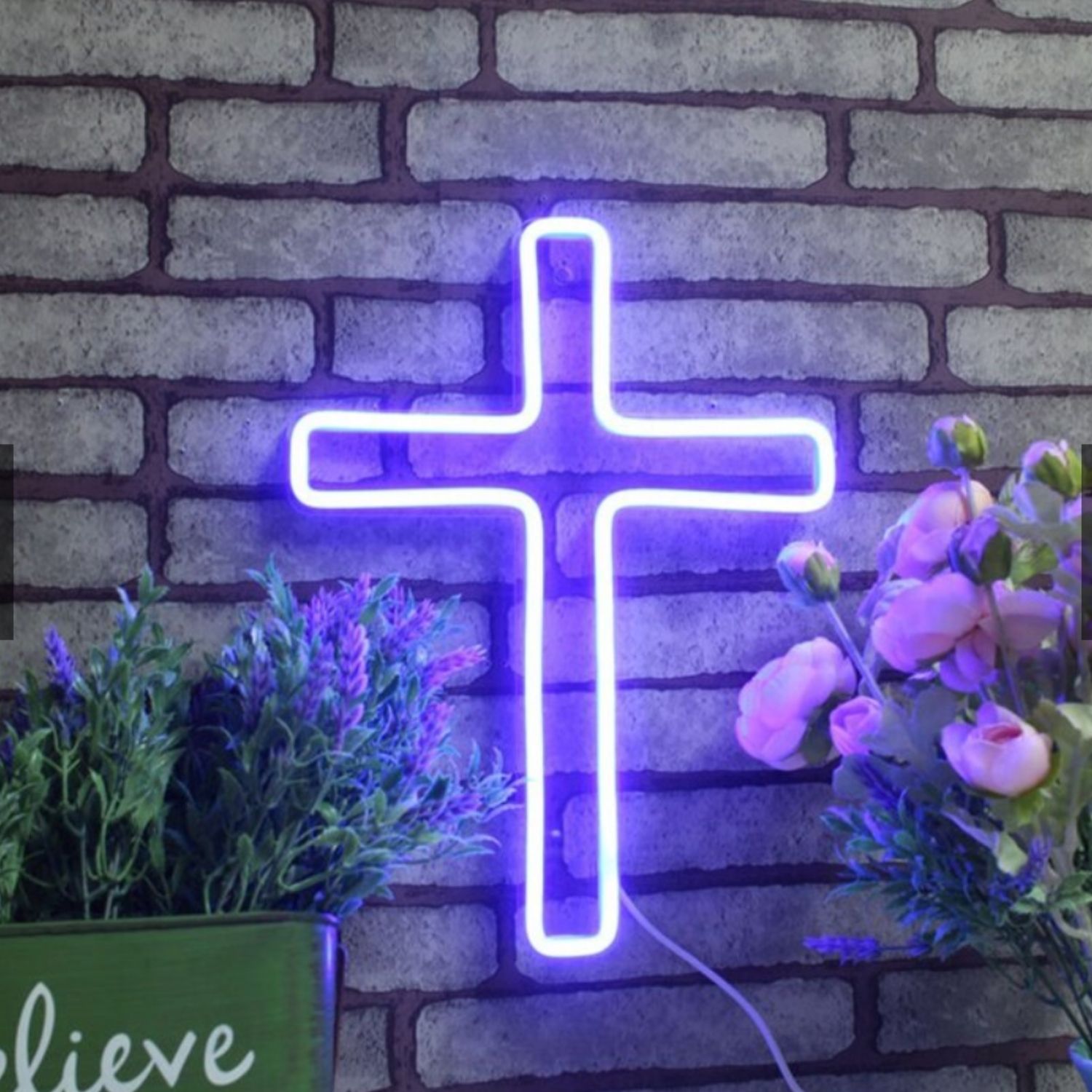 Neon LED Wall Mounted Cross-Shaped LED Neon Light | Wall Art Decoration | Room Club Decor