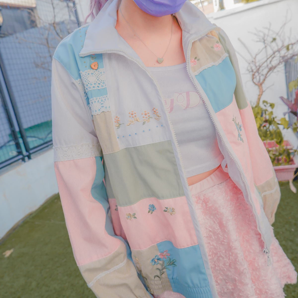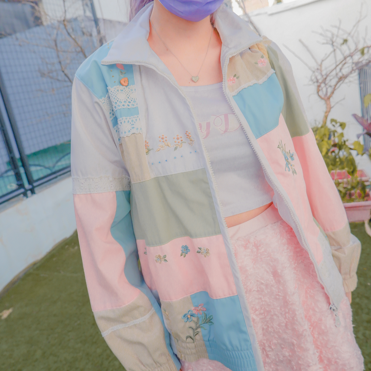 Pastel Forest Girl Windbreaker Vintage Jacket