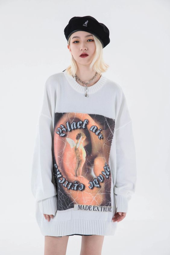 Unisex Men and Women casual knitted sweater crewneck sweatshirt.