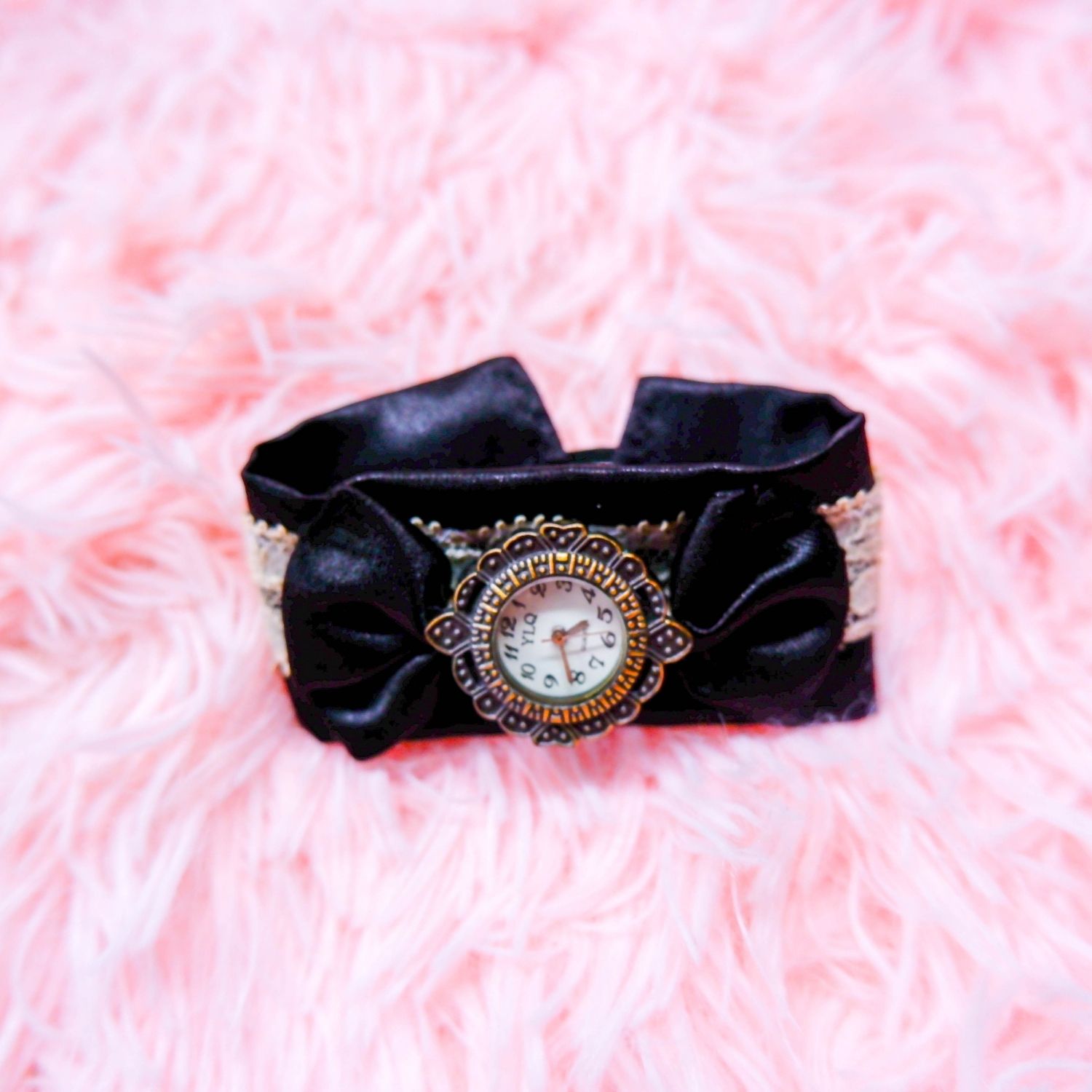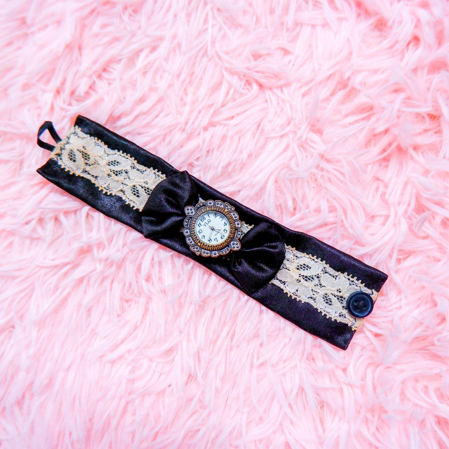 Step into a whimsical world of fantasy with our Vintage Wrist Watch, a charming accessory that exudes Victorian elegance and Gothic allure. This Steampunk wrist wrap bracelet features meticulous detailing and a unique design, with black coloring adorned by white lace in the middle, perfect for those with a taste for the eccentric.