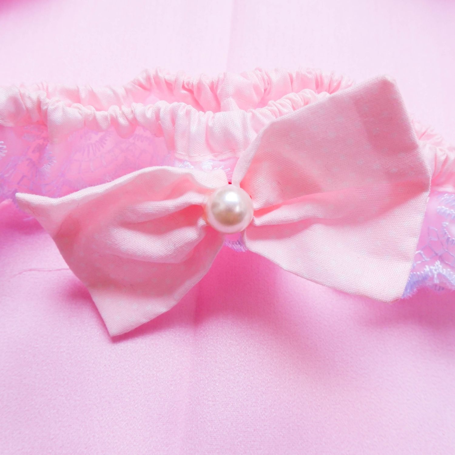 Crafted with exquisite attention to detail, it features delicate scrunchie accents adorned with white lace, ribbons, and a pearl embellishment in the middle, evoking a sense of vintage charm. Perfect for women and girls alike, this accessory is a must-have for those who appreciate the romantic and playful aesthetic. Enhance your ponytail or elevate your ensemble with this exquisite piece.