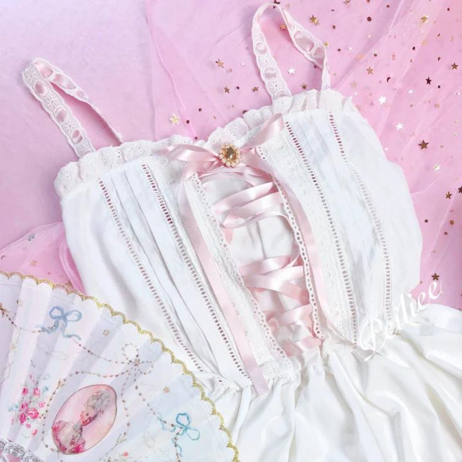 The top part of this dress design is corset-like design without any bones, but still shows a lovely shape of yours 🌸